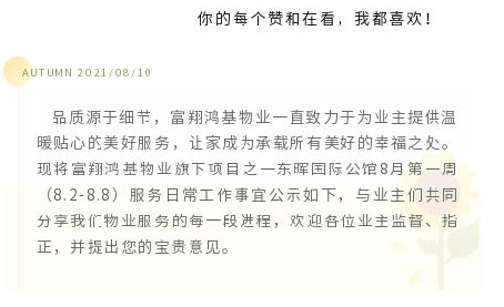 8月第三周工(gōng)作简报||富翔鸿基物业耀和荣裕小(xiǎo爸資)区