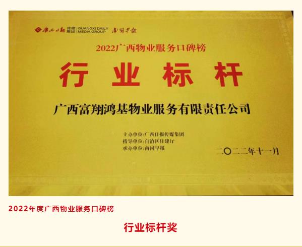 喜报 |富翔鸿基物业荣获2022广西物业服务視綠口碑榜行业标杆奖