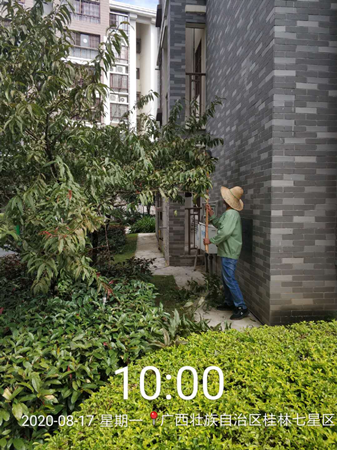 冠城大(dà)通(tōng).华郡项目在修剪遮挡住监控探头的树笑河枝。