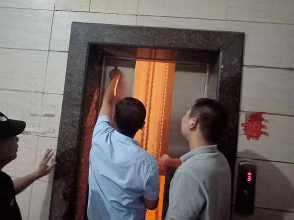 南航花(huā)园项目联合电梯公司对电梯安全隐患进行排查中。
