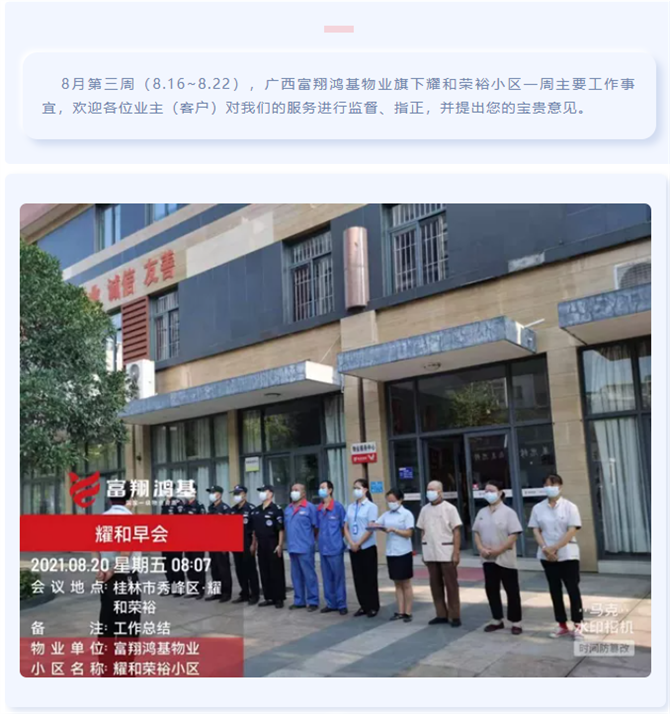 8月第三周工(gōng)作简报||富翔鸿基物业耀和荣裕小(xiǎo)区