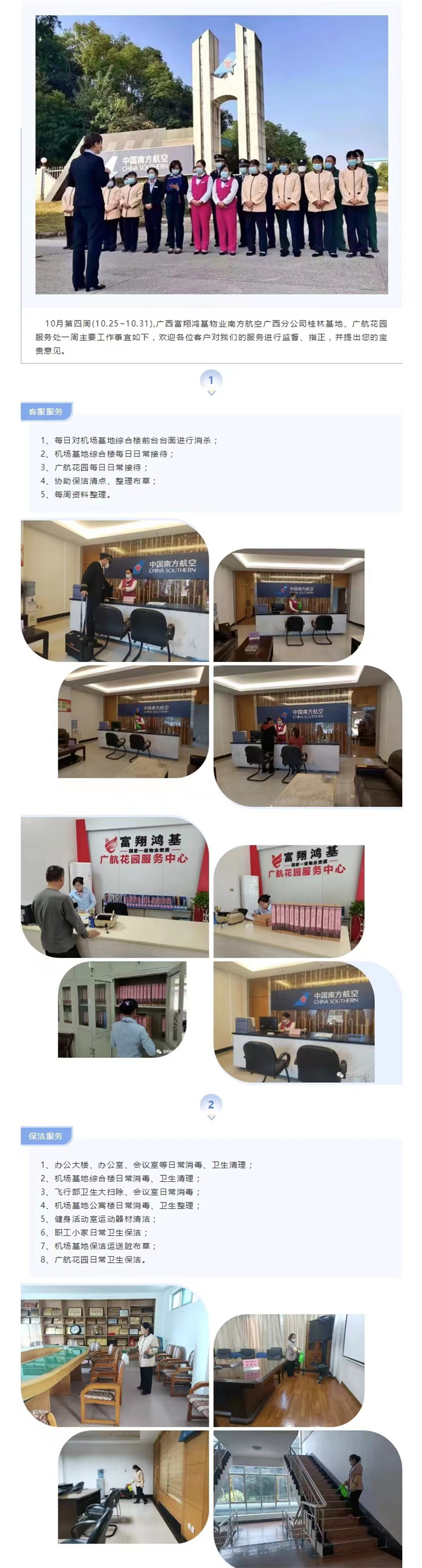 10月第四周工(gōng)作简报||富翔鸿基物业南方航空广西分公司桂林(lí影微n)基地、广航花(huā)园服务处