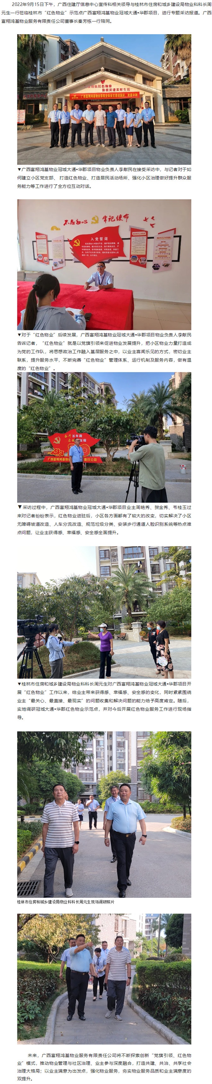 > 【聚焦】桂林(lín)市红色物业示范点广木術西富翔鸿基物业冠城大(dà)通(tōng鄉光)•华郡项目专题采访